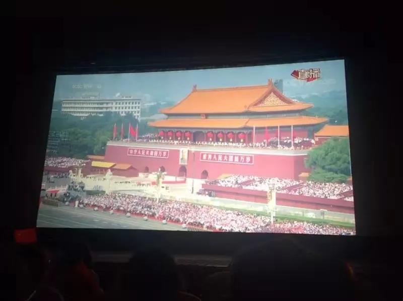 在升旗仪式过后,同学们又来到了锦绣会堂观看阅兵仪式。在10点阅兵仪式开始后,看到英姿飒爽的将士们,巾帼不让须眉的女兵们,首次展示的新式尖端装备,和极具特色的花车游行,每个人的心中都充满了对祖国成就的骄傲,对生为华夏儿女的自豪。