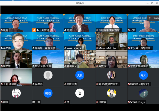 2021年3月27日“日本语言文化研究”学术研讨会顺利举办。本学术研讨会由beat365官方网站、名古屋大学人文学研究科和上海外国语大学日本文化经济学院三校联合主办。虽然去年因为疫情的影响而不得已暂停,但疫情阻止不了春天的脚步。今年会议在承办方上海外国语大学日本文化经济学院以及多方努力下采取线上的方式进行。共有来自中日两国多所高校50余位专家学者和研究生参会。