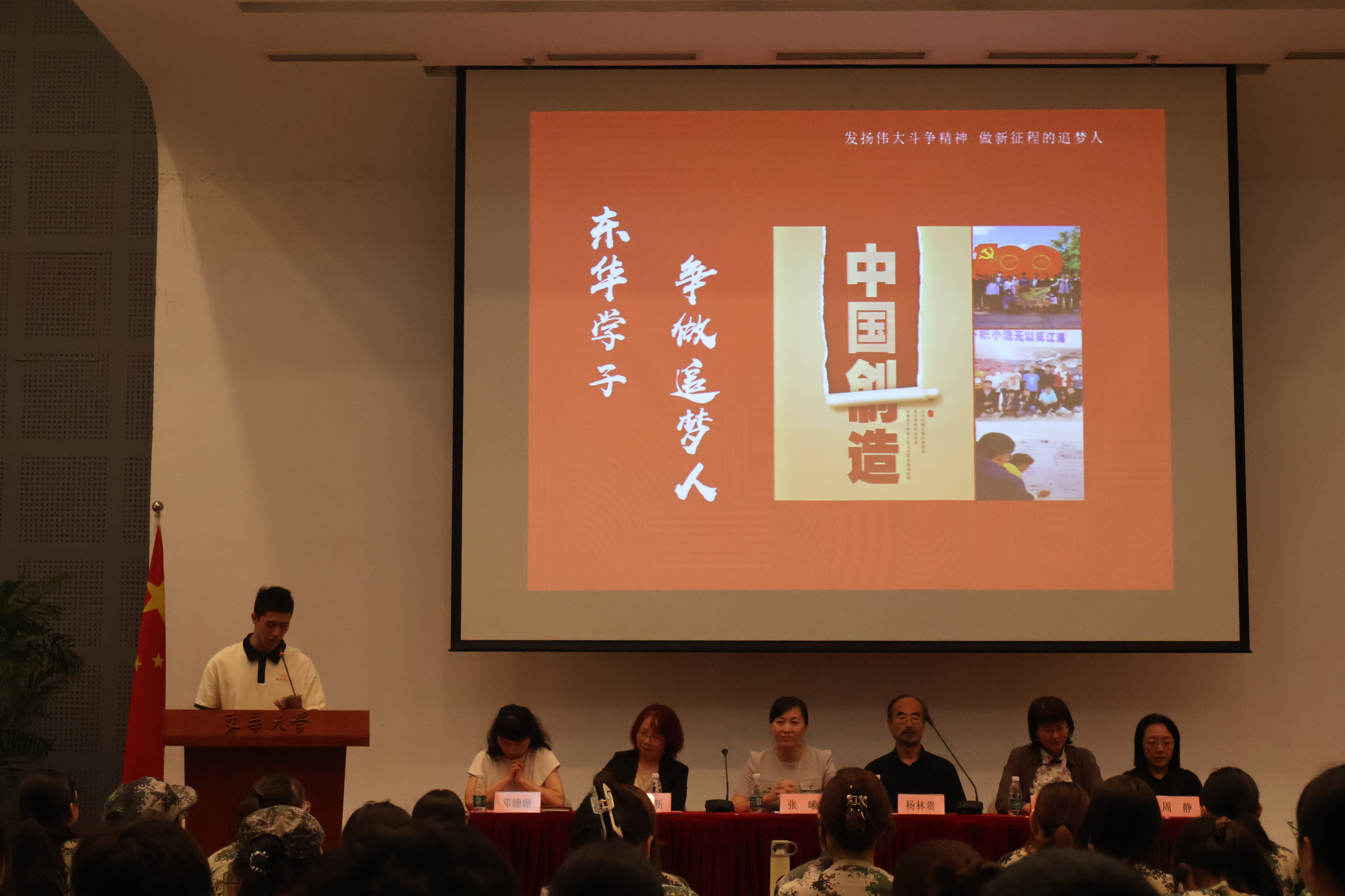 会上,beat365官方网站“学习进行时”学生理论宣讲团吴再奕为新生带来了振奋精神的“开学第一课”《发扬伟大斗争精神,做新征程的追梦人》。革命烈士的英雄事迹、先进模范的忘我奉献、东华人的奋进日夜,他都一一道来,他以青年人的视角呼吁广大新生,勇担实现中华民族伟大复兴梦的重任。