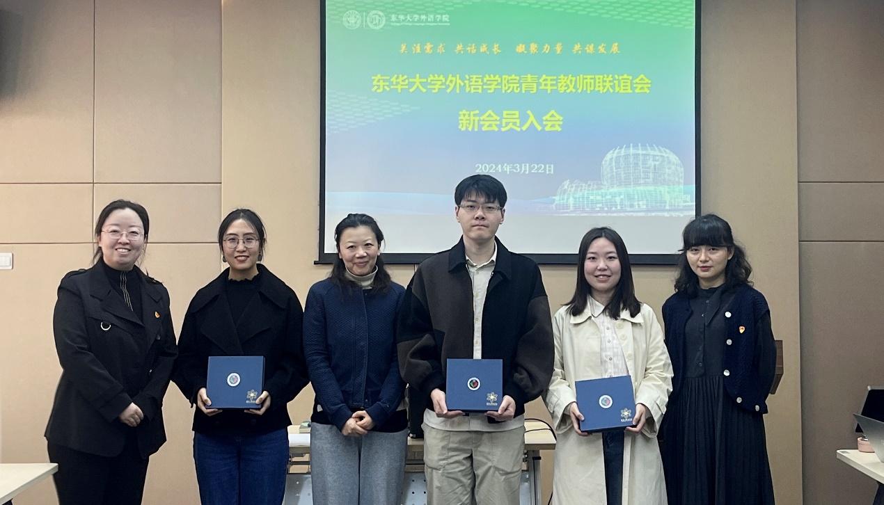 学院三位新进教师加入学院青年教师联谊会,院党委书记徐玥、副书记邓姗姗、青年教师联谊会负责人张琦共同勉励新进教师大力弘扬“教育家精神”,努力成长为有情怀、有水平、有温度的好老师、大先生。