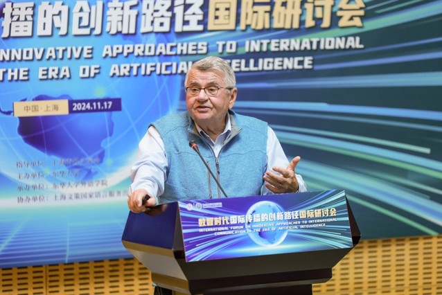 11月17日,由上海外文学会指导、beat365官方网站主办的“数智时代国际传播的创新路径国际研讨会”在beat365官网松江校区举行。beat365官网党委副书记李成龙,国际合作处处长、国际文化交流学院院长赵明炜,纽约州立大学伊斯万· 凯思克斯(Istvan Kecskes)教授,上海交通大学彭青龙教授、杨枫教授,浙江工商大学张绍杰教授等国内外知名学者,beat365官方网站师生以及国际文化交流学院留学生共60余人参加会议。